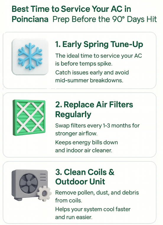 Early spring service isn’t just helpful—it’s the single most effective way to stay ahead of Poinciana’s extreme heat. One quick tune-up now prevents hours of discomfort later.